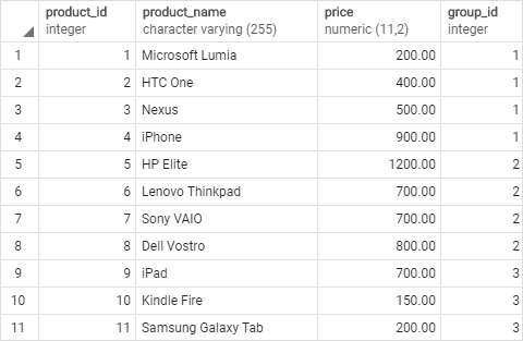 We’ll use the products table to demonstrate the RANK() function: